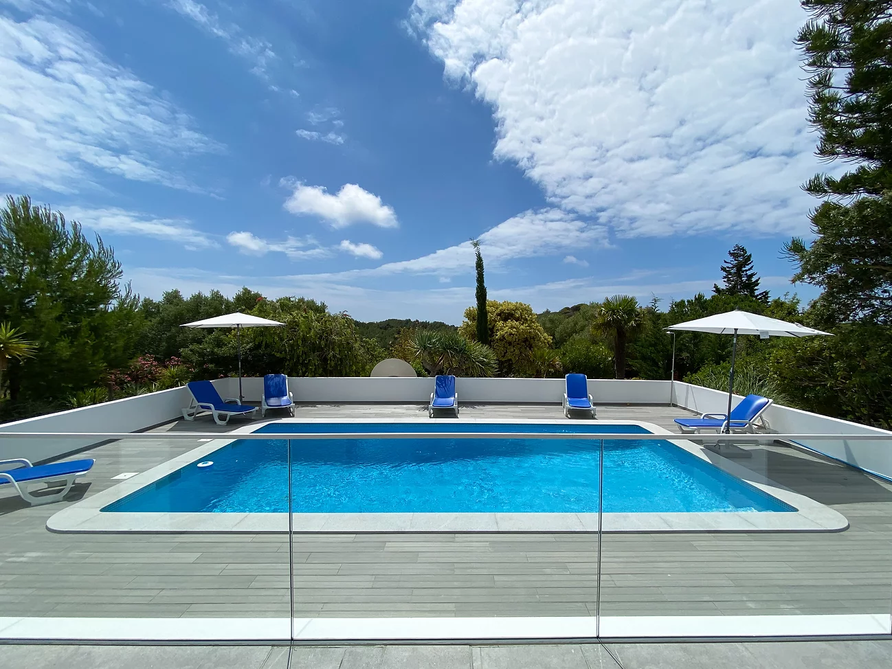 The heated pool is 4 x 8 meters with steps for easy. The pool area has 6 pool beds, plenty of space and an outside shower. Access to the Pool area is also ‘child safe’ where all access points can be secured as appropriate.