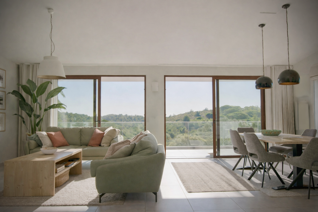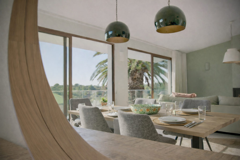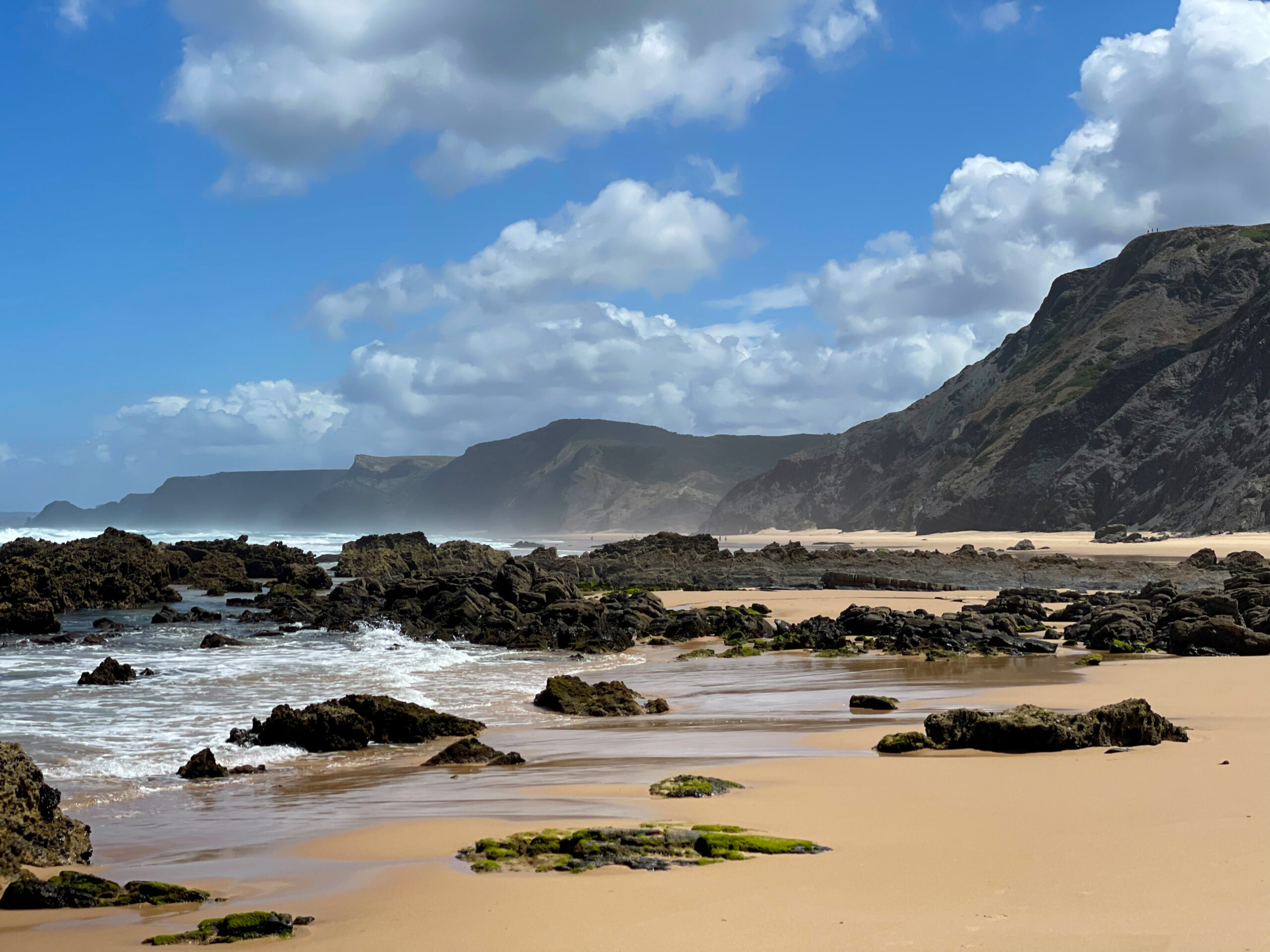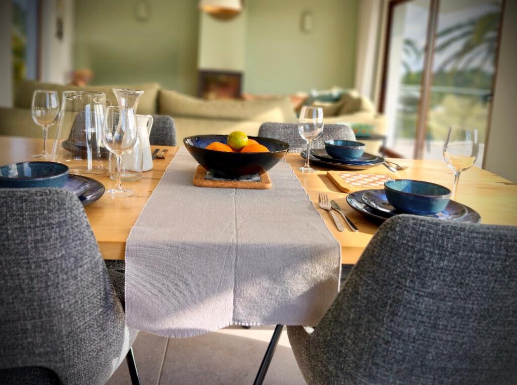 On the first floor is a large living and dining room with a fireplace, dining table, child seat and a large outside terrace of about 30m² with unspoiled views over the Costa Vincentina national park and the Atlantic ocean in the distance. The newly fitted and fully equipped kitchen has a fridge, dishwasher, and oven.